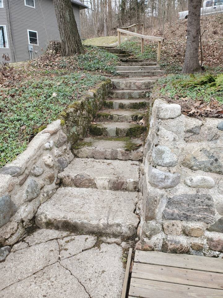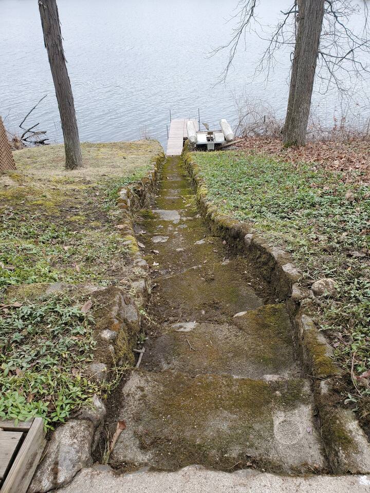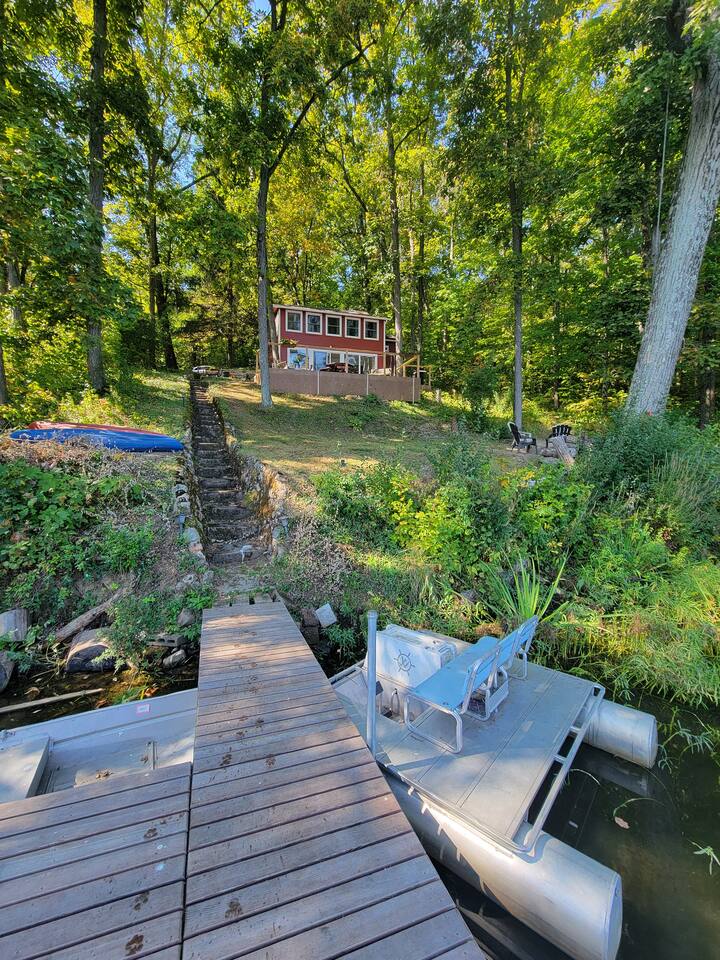 This is quite a few steps down from the parking area. The lake is down just a little farther from the cottage.
