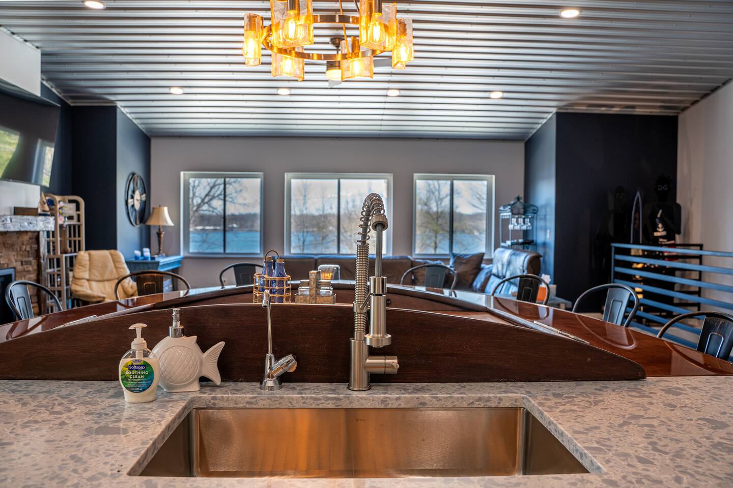UNIQUE, SPACIOUS, and HAS IT ALL! Views and Sunsets of Lake Tippecanoe - All Sports Lake; second to none! Space to sleep a minimum of 12, 2 full baths with private w/c, walk-in showers, a gas fireplace, amazing 1940's Century boat island, lake access and pier use just steps away, pier space for personal watercraft or rental (additional fee), Boat rentals available, Kayaks, paddle boards, reverse osmosis water, charcoal grill, outdoor seating, fire pit, artificial grass area, and more!